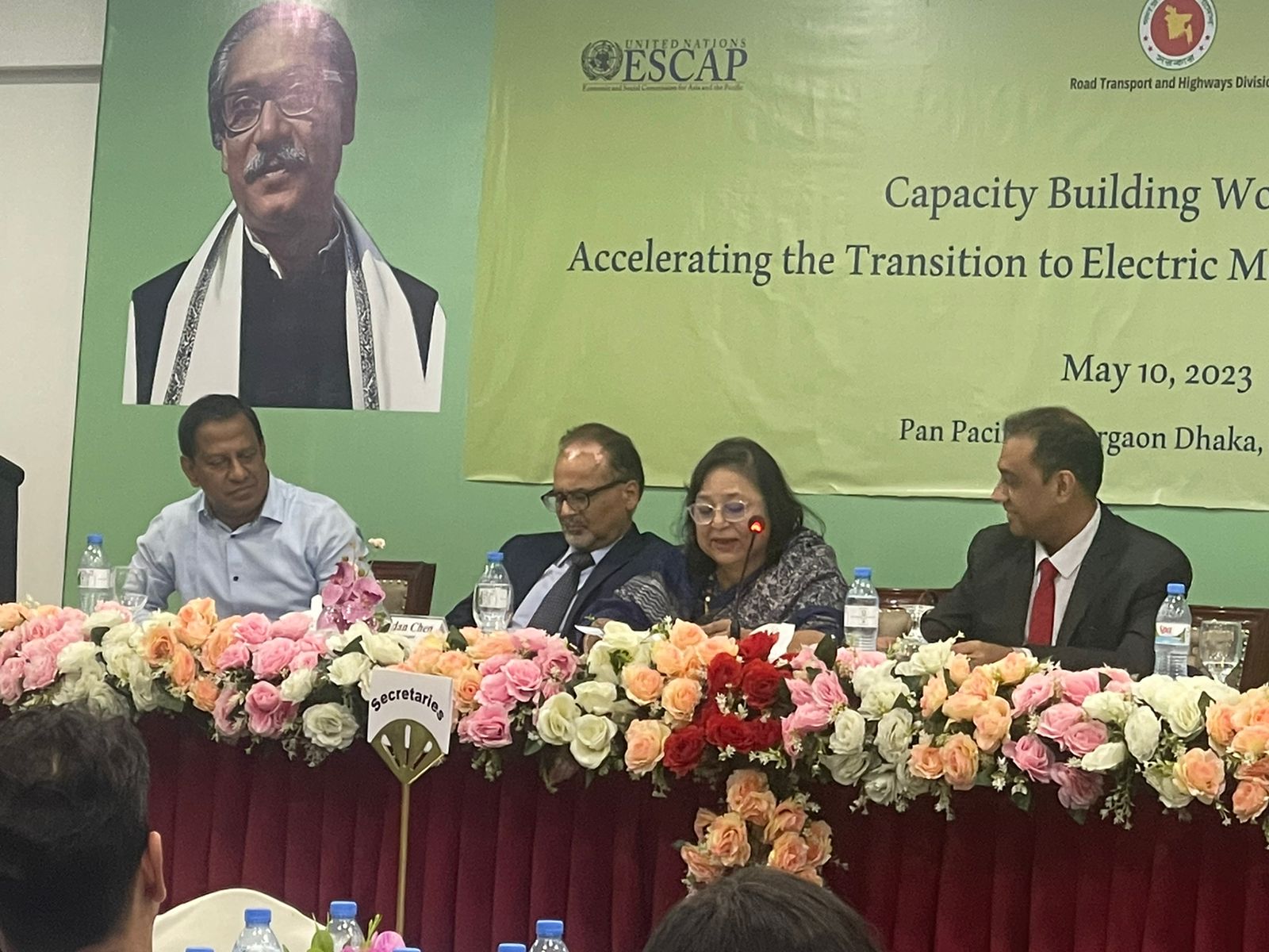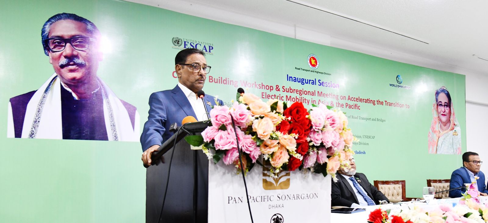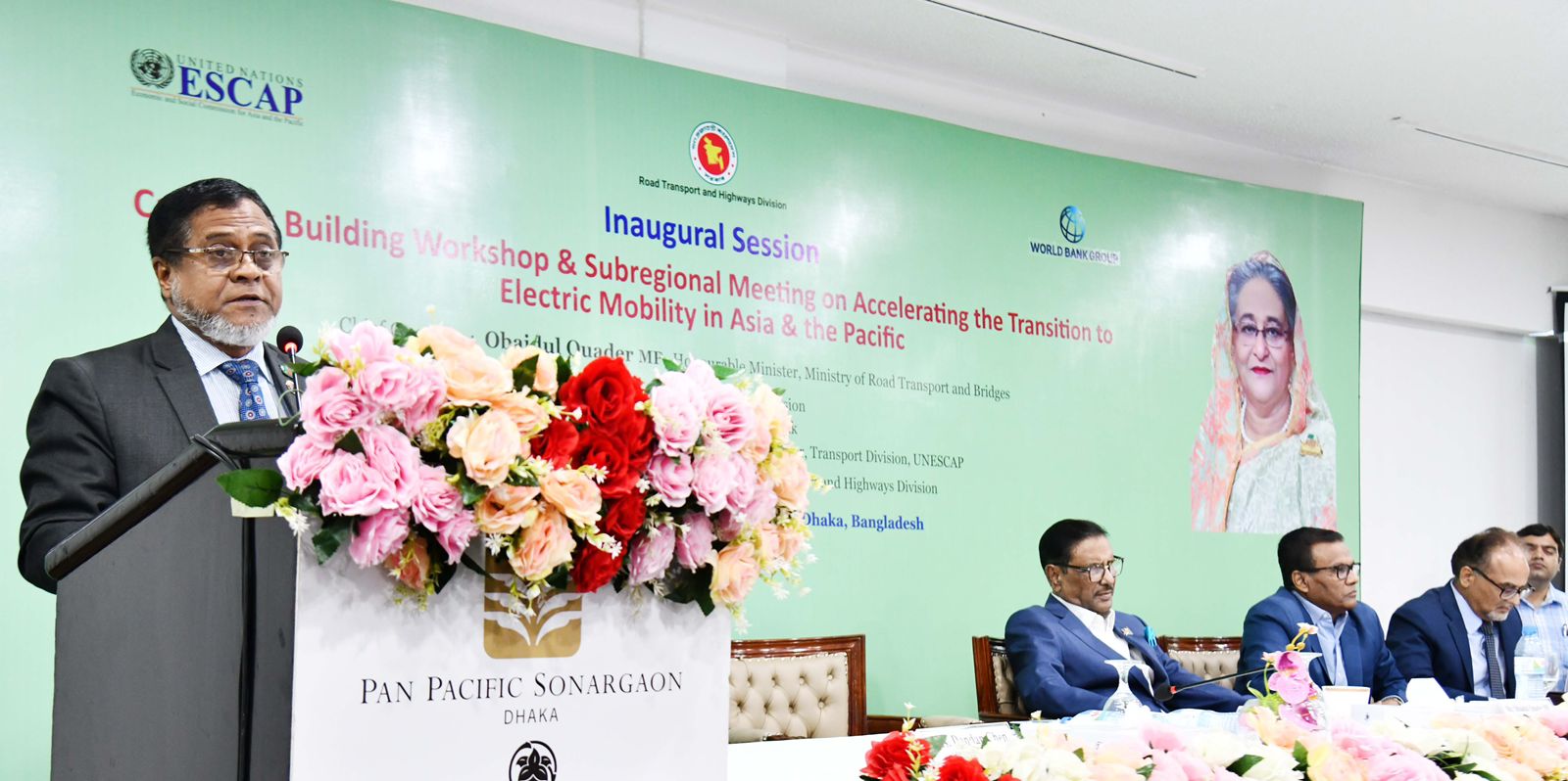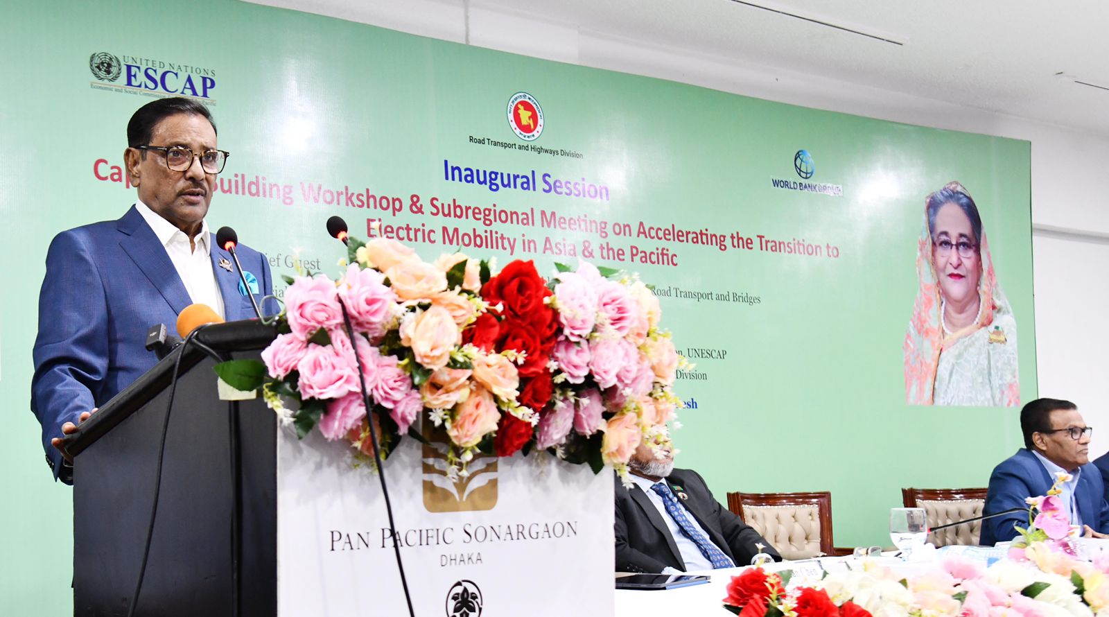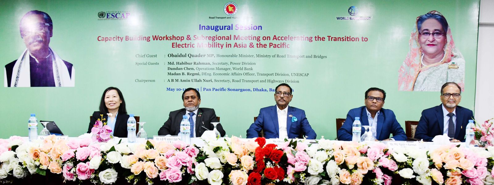 Road Transport and Highways Division in collaboration with World Bank and UNESCAP, has organised a two day long capacity building workshop and subregional meeting on Electric Mobility in Hotel Pan Pacific Sonargaon, Dhaka. Hon’ble Road Transport and Highways Minister Obaidul Quader MP addressed as chief guest in the inaugural session of the workshop, today. Hon’ble Secretary, Road Transport and Highways Division A B M Amin Ullah Nuri chaired the session. Secretary, Power Division Md. Habibur Rahman, Ms. Dandan Chen, Operation Manager of WB and Mr. Madan B. Regmi, Economic Affairs Officer of Transport Division, UNESCAP were present as special guest. Ms. Neelima Akhter, Additional Secretary, RTHD delivered opening speech in this session (10 May, 2023).